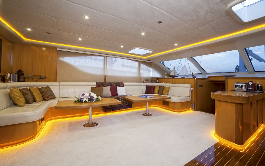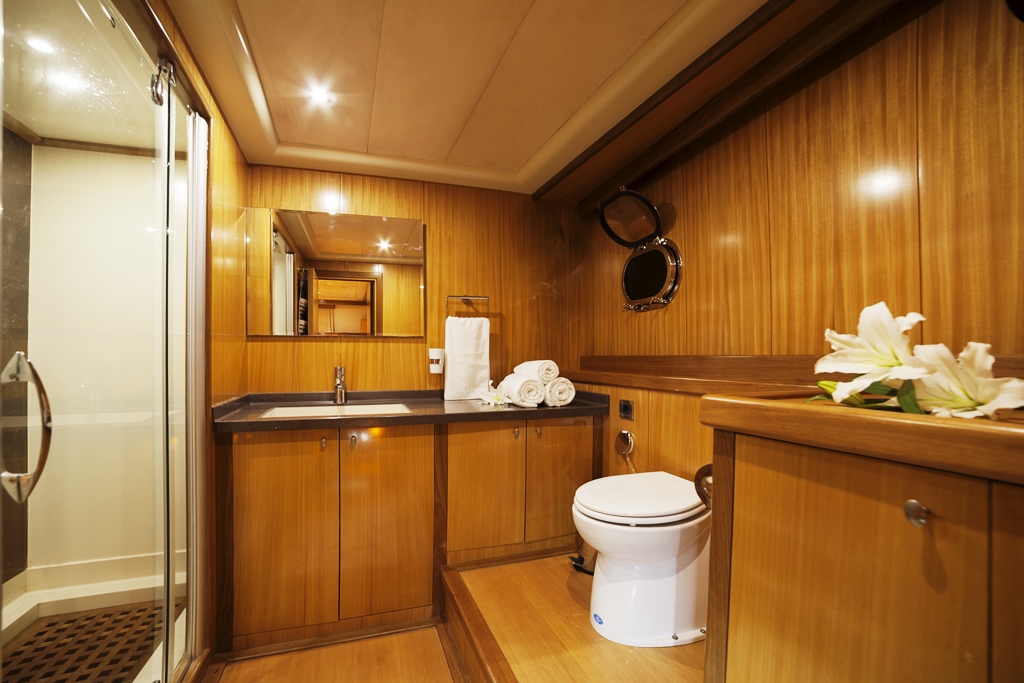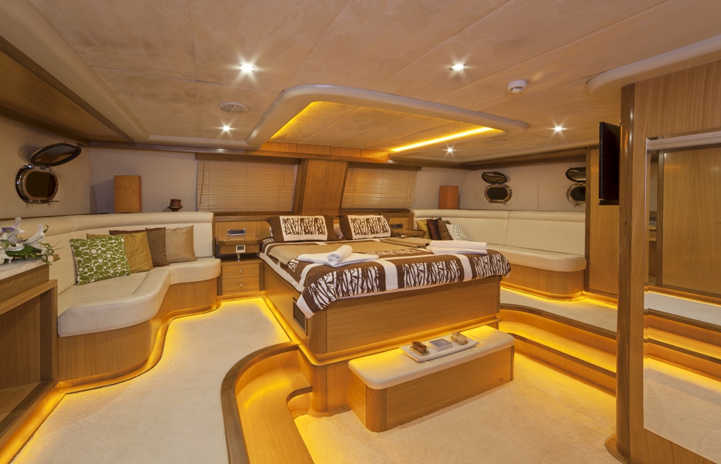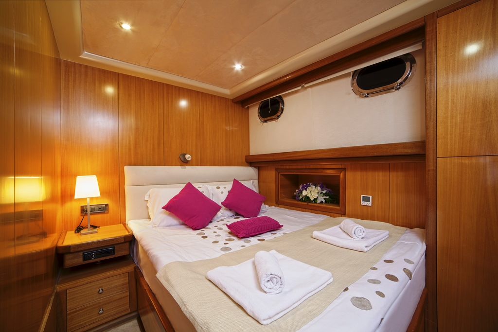 Modern looking gulet accommodates 8 guests in 4 cabins. (2 Master, 1 Double, 1 Twin cabins)